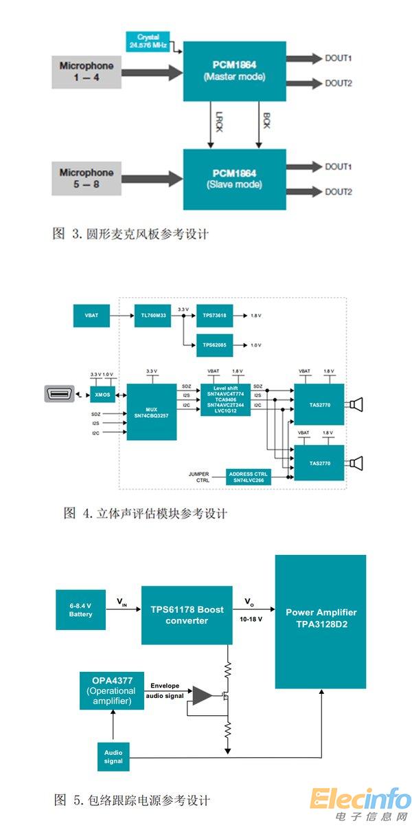 在采用多麥克風(fēng)設(shè)計和語音識別時,我們也無需重新設(shè)計?;赑CM1864 的TI 圓形麥克風(fēng)板(CMB) 參考設(shè)計使用兩個4 通道音頻ADC 與一組模擬麥克風(fēng)(最多含八個)連接,并且可以在嘈雜的環(huán)境中提取清晰的用戶語音指令。