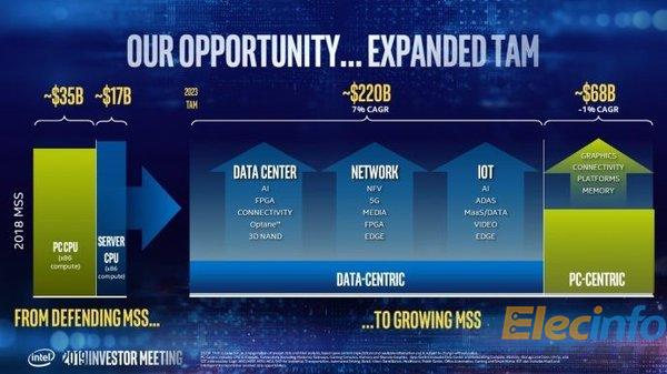 司睿博表示,用戶目前對(duì)于數(shù)據(jù)分析、傳輸和存儲(chǔ)的需求增速遠(yuǎn)超以往任何時(shí)候。到2023 年,芯片的潛在市場(chǎng)規(guī)模將達(dá)到近3000億美元。他認(rèn)為,英特爾無(wú)可比擬的資產(chǎn)組合是在這一市場(chǎng)搶占份額的關(guān)鍵所在。英特爾預(yù)計(jì),每年產(chǎn)生的數(shù)據(jù)量將呈現(xiàn)25%的增長(zhǎng),這將驅(qū)動(dòng)計(jì)算需求達(dá)到50%的復(fù)合年均增長(zhǎng)率。