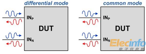如圖2所示,對(duì)于差分端口來說,我們必須區(qū)分共模波和差模波。兩種模式具有相同的入射振幅,但差模入射波具有180度的相移,而共模入射波具有相同的相位。