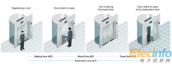 設(shè)計(jì)現(xiàn)代電梯系統(tǒng)的關(guān)鍵目標(biāo)之一是縮短所有乘客到達(dá)目的樓層的平均時(shí)間。例如,在一幢16層的商業(yè)辦公樓中,到達(dá)目的樓層的平均時(shí)間約為70秒,平均等待時(shí)間約為25秒 - 但該時(shí)間會(huì)根據(jù)當(dāng)天的實(shí)際情況而有所變化。在午餐時(shí)段,由于人員進(jìn)出辦公樓會(huì)產(chǎn)生雙向流量,因此電梯到達(dá)目的樓層的時(shí)間往往比早上長。