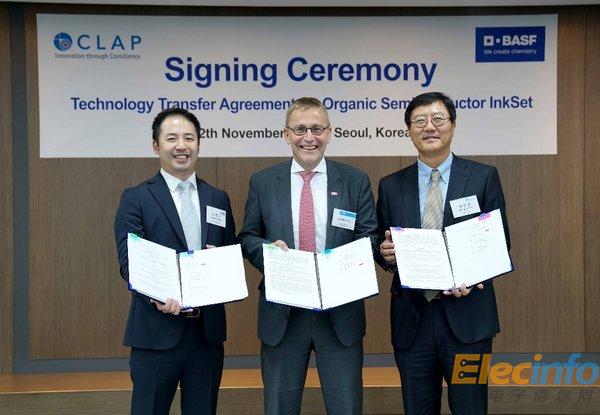 2019年11月12日,韓國顯示配件及傳感器行業(yè)的領先企業(yè) CLAP( CEO:金星虎)與全球化工公司巴斯夫 (BASF) 在韓國首爾簽訂 Organic Semiconductor InkSet 技術轉(zhuǎn)讓合同。