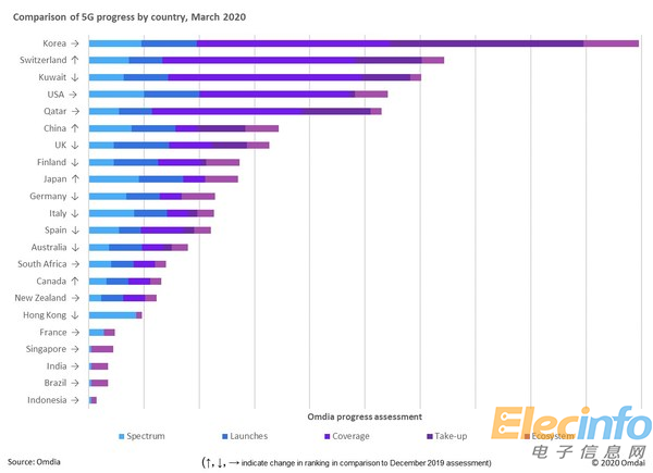 全球調(diào)查公司OMDIA發(fā)布了《2020年3月全球5G進展更新》第二版報告。OMDIA分析了22個國家的5G技術(shù)部署情況,而該報告顯示其中韓國在5G部署領(lǐng)域排名第一。