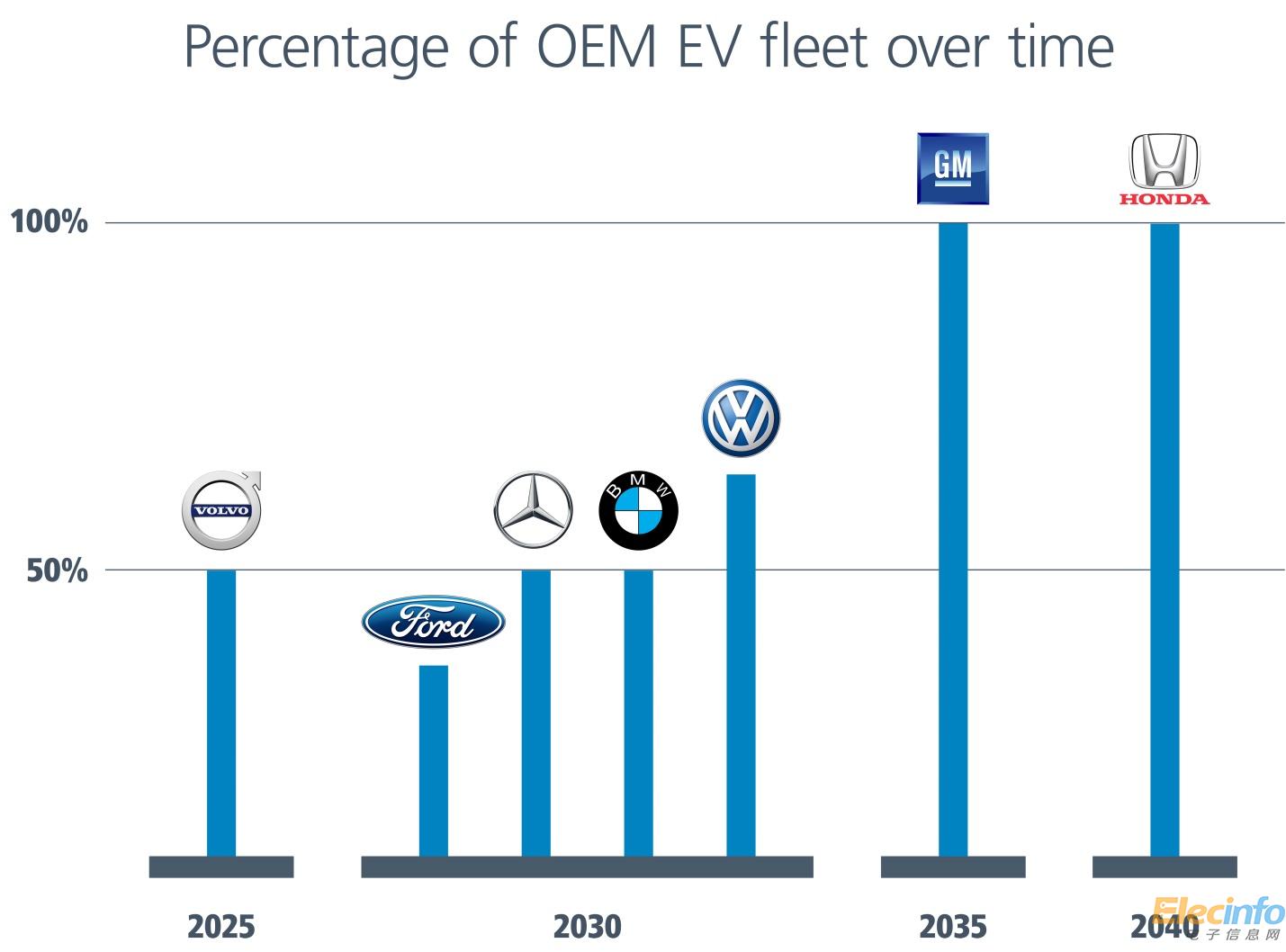 圖2:OEM 廠商已為其產(chǎn)品線電氣化制定積極目標(biāo)。這些目標(biāo)是打造世界級 xEV 平臺的催化劑。