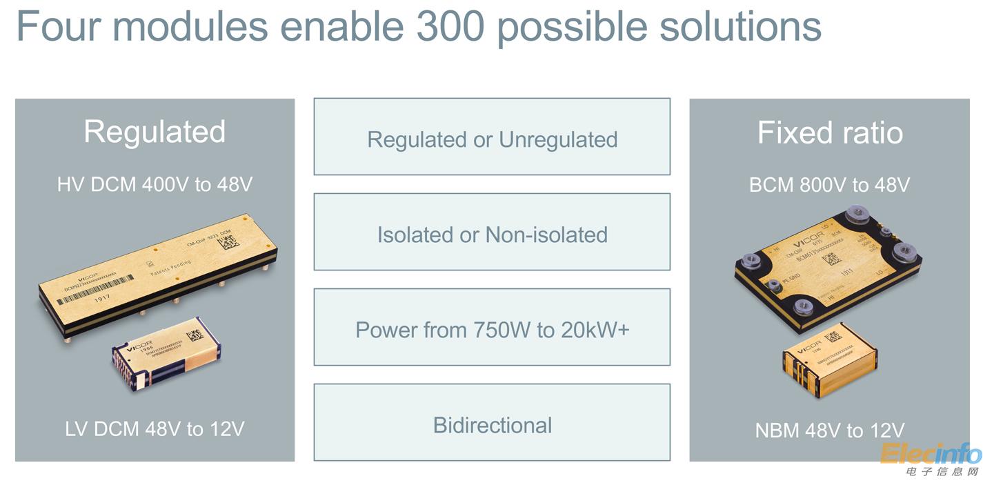 此外,Vicor 模塊化方法還允許工程師通過使用三到四個不同類型的可擴(kuò)展構(gòu)件模塊,實(shí)現(xiàn)大約 300 種供電組合。(圖 4)這種設(shè)計(jì)方法總共可節(jié)省數(shù)百個小時的時間和資源,能夠幫助 OEM 廠商在電氣化競爭中處于領(lǐng)先地位。