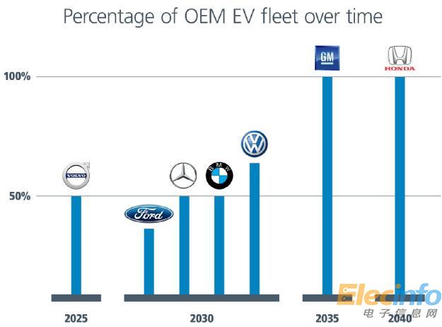 圖2:OEM 廠商已為其產(chǎn)品線電氣化制定積極目標(biāo)。這些目標(biāo)是打造世界級 xEV 平臺的催化劑。