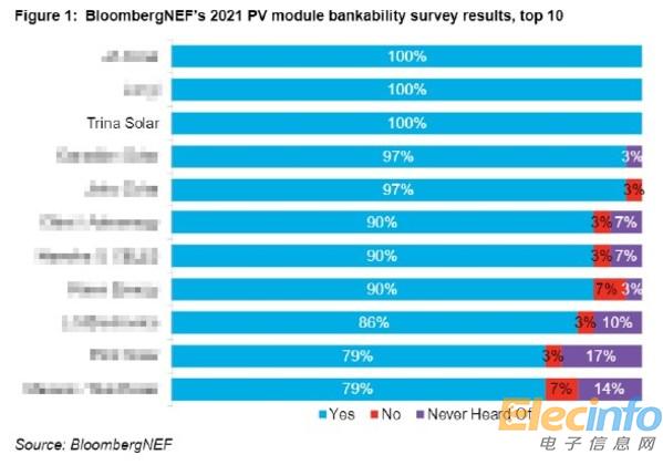 BNEF以公司的財(cái)務(wù)健康狀況、光伏組件在項(xiàng)目上的跟蹤數(shù)據(jù)以及制造廠商的質(zhì)保為重要評(píng)估指標(biāo),向全球銀行、基金、工程總承包以及獨(dú)立發(fā)電廠等機(jī)構(gòu)發(fā)送調(diào)查問卷,并與質(zhì)量檢測(cè)及技術(shù)專家進(jìn)行深度訪談,調(diào)查覆蓋范圍廣,評(píng)估公開透明。BNEF是全球新能源市場(chǎng)最具公信力的第三方研究機(jī)構(gòu)之一,其報(bào)告長(zhǎng)期以來是眾多金融機(jī)構(gòu)在商業(yè)信貸方面的重要參考依據(jù)。