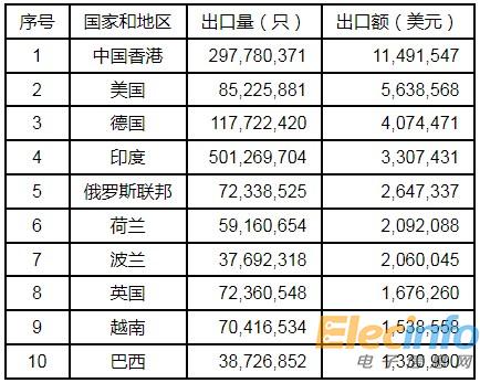 2、2021堿錳電池出口前十大目的地(按出口額排序)