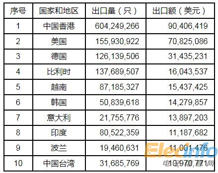 2、2021年鋰一次電池出口前十大目的地(按出口額排序)