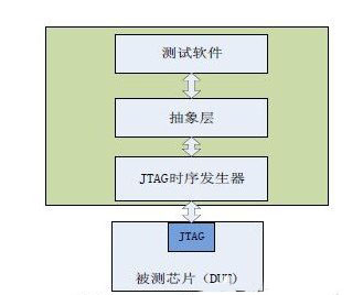 JTAG 在物理層和數(shù)據(jù)鏈路層具有統(tǒng)一的規(guī)范,但針對不同的芯片仿真測試協(xié)議可能略有差異。為了使測試模型具有通用性,我們對測試模型的JTAG 接口做了一個抽象層,如圖3 所示。圖中抽象層將類型多樣的控制函數(shù)轉(zhuǎn)化成芯片能識別的數(shù)據(jù)流來控制被測芯片的工作狀態(tài)。