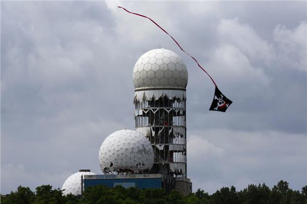 一個風箏飛過設于德國柏林的美國國安局廢棄監(jiān)聽站