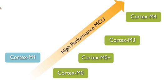 附圖 : ARM Cortex核心依據(jù)效能不同,擁有包括M0、M0+、M3、M4等不同架構