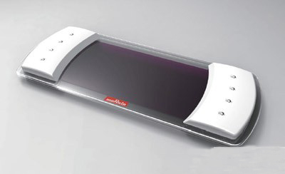 通過(guò)分別使用了能夠檢測(cè)出彎曲度的壓電薄膜和能夠檢測(cè)出扭轉(zhuǎn)程度的壓電薄膜,此應(yīng)用裝置是能夠通過(guò)用雙手彎曲和朝相反方向扭轉(zhuǎn)薄膜型機(jī)體來(lái)操縱電視機(jī)的新感覺(jué)遙控器。同時(shí),由于此遙控器安裝了可將光能轉(zhuǎn)換成電能的光電池*,因此不需要使用電池。