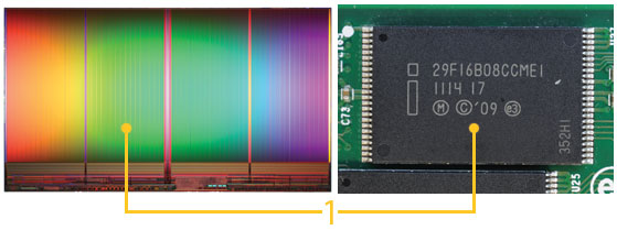 1.20個MT29F16B08CCME1 NAND MLC集成電路,以鏡像方式安裝在電路板的正反面,實現(xiàn)了存儲容量高達200GB的Intel 710固態(tài)硬盤。