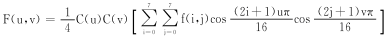 時(shí)C(u)=1,C(v)=1。f(i,j)經(jīng)過DCT變換之后,F(xiàn)(0,0)是直流系數(shù),其他參數(shù)時(shí)為交流系數(shù)。經(jīng)過DCT變換后一幅圖像的DCT系數(shù)塊集中在8×8矩陣的左上方,這里直流DC系數(shù)幅度最大,這一矩陣區(qū)域集中了圖像的大部分低頻頻譜分量,離矩陣左上角越遠(yuǎn)的高頻頻譜幾乎不含圖像信息。變換過程本身雖然并不產(chǎn)生壓縮作用,但是變換后的頻率系數(shù)卻非常有利于碼率壓縮。