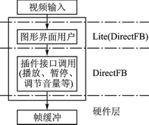 嵌入式播放器的架構(gòu)如圖2所示。采用DirectFB開發(fā)的Lite作為圖形界面,與用戶進行直接交互;調(diào)用DirectFB的Video實現(xiàn)了音視頻的插件接口和解碼器模塊。該接口將FFmpeg、xine 、libmpeg3等多媒體庫封裝成統(tǒng)一接口,具備很強的擴展性;基于Framebuffer的輸出,消除了對于特定架構(gòu)的依賴,有效地增強了系統(tǒng)的可移植性。