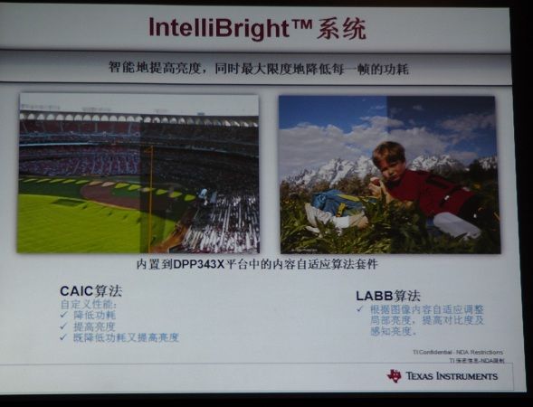 此外,TI還在現(xiàn)有物理?xiàng)l件的狀況下,引進(jìn)全新圖像處理算法套件IntelliBright,可智能地提升圖像亮度和對(duì)比度,同時(shí)使功耗最小化。其原理是研究人類視覺(jué)的特性,提高人眼所感知的亮度。