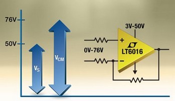 運算放大器提供 50μV 精準度和 0V 至 76V 的輸入范圍