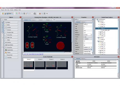 GDD X可以結(jié)合Microchip的圖形庫進行開發(fā),它也可以作為一個獨立的工具,或作為Microchip免費MPLAB X集成開發(fā)環(huán)境(IDE)的插件。它允許創(chuàng)建一個可配置顯示分辨率的項目,并將所有所需的驅(qū)動/板支持文件導(dǎo)入MPLAB X。生成的代碼可以進行編譯并在硬件上測試。對原有GDD的主要改進包括:屏幕縮略圖視圖和對齊網(wǎng)格(snap-to-grid)功能、剪切/復(fù)制/粘貼、自動對象對齊、事件處理,以及支持每像素(bpp)1位、4位和8位色彩模式的調(diào)色板。