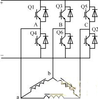 三相PWM逆變器是要把直流輸入變換為三相正弦交流輸出,許多實(shí)際裝置中通常采用經(jīng)典的三相逆變器結(jié)構(gòu),如圖2所示。這是由三個(gè)基本橋臂組成的三相橋式逆變器,其控制方式一般采用雙極性方式,A、B、C相通常公用一個(gè)三角載波,三相調(diào)制信號(hào)依次相差120°,各相功率開關(guān)的控制規(guī)律相同。