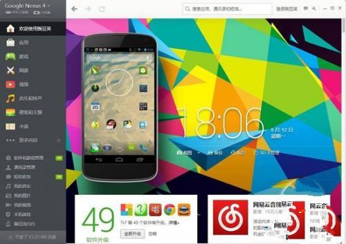 區(qū)別于管理軟件一貫單調(diào)、內(nèi)容堆疊式的設(shè)計(jì)風(fēng)格,豌豆莢的設(shè)計(jì)師對(duì)Windows新版歡迎頁(yè)首屏界面進(jìn)行了顛覆性的改版:全界面背景布局簡(jiǎn)約美觀,保留4種常用管理功能(截圖、備份、恢復(fù)、SD卡管理);沿用豌豆莢首創(chuàng)的手機(jī)機(jī)殼圖示,提升了操作過(guò)程中的互動(dòng)真實(shí)感。為突出右側(cè)主屏幕的推薦,側(cè)邊欄用深色弱化,并將內(nèi)容獲取按鍵前置,體現(xiàn)了豌豆莢對(duì)內(nèi)容聚合的注重。