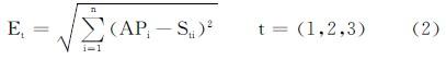 假設(shè)有n個(gè)AP,m個(gè)參考標(biāo)簽,則AP點(diǎn)接收到的待定標(biāo)簽的強(qiáng)度量P=(AP1,AP2,…,APn),采集到的第t個(gè)參考標(biāo)簽的強(qiáng)度矢量為St=(St1,St2,…,Stn),則待定標(biāo)簽和參考標(biāo)簽St之間的歐氏距離為: