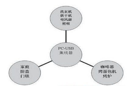 本文介紹了建立在USB 基礎(chǔ)之上的、創(chuàng)新的家電自動化應(yīng)用,包括USB 自動洗衣機(jī)、烘干機(jī)、咖啡機(jī)、安保系統(tǒng)以及家電控制臺,如圖1 所示。此外,本文還以基于USB 的照明控制為例,講解了基于USB 的家電自動化的基礎(chǔ)知識。最后,本文比較了USB 和其他用于家電自動化的主流無線技術(shù)(如,ZigBee. 通信協(xié)議和Bluetooth. 無線通信協(xié)議等)的異同。