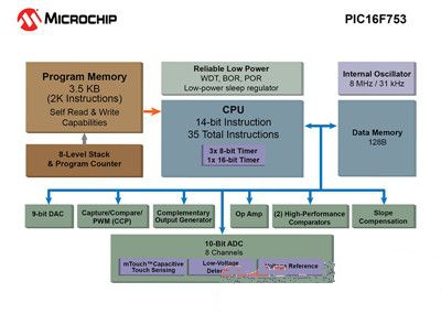 PIC16F753具有更多智能模擬功能,有助于提高系統(tǒng)性能和效率,同時降低系統(tǒng)成本,尤其對于較新的LED照明和智能能源應(yīng)用。憑借集成COG、高性能比較器和針對直驅(qū)FET的50 mA輸出等眾多片上通用和專用外設(shè),PIC16F753 MCU可滿足各種應(yīng)用需求。高電壓版采用了并聯(lián)穩(wěn)壓器,允許在2V至未指定用戶定義最大電壓等級下工作,工作電流小于2 mA。高電壓版本非常適用于那些具備高電壓電源軌的成本敏感型應(yīng)用。此外,8通道10位ADC可用來實現(xiàn)各種傳感器和電容式觸控等mTouch?觸摸傳感應(yīng)用。