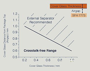 近接傳感器通過接收物體所發(fā)射光信號的反射來檢測該物體,但是智能手機(jī)蓋等也會將光線反射回傳感器。這種所謂的串?dāng)_通??赏ㄟ^安裝光學(xué)屏障來攔截,也可以通過將發(fā)射器安裝在一定距離之外來防止蓋子反射的光信號到達(dá)檢測器。但是,以上兩種方法都極其復(fù)雜?,F(xiàn)在,有了歐司朗開發(fā)的 SFH 7773,設(shè)計人員就不必再擔(dān)心串?dāng)_問題了,這是因為該裝置內(nèi)的發(fā)射器和檢測器芯片之間的距離足夠遠(yuǎn),而且孔徑光闌已集成在封裝內(nèi)避免了串?dāng)_或大幅度地抑制了串?dāng)_。
