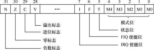 ARM V4的CPSR寄存器(和保存它的SPSR寄存器)中的位分配如下圖1所示。
