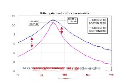 圖3:BGB719N7ESD相較于前幾代的產(chǎn)品(BGB707L7)在FM應(yīng)用上有幾個方面的增強,例如高增益等