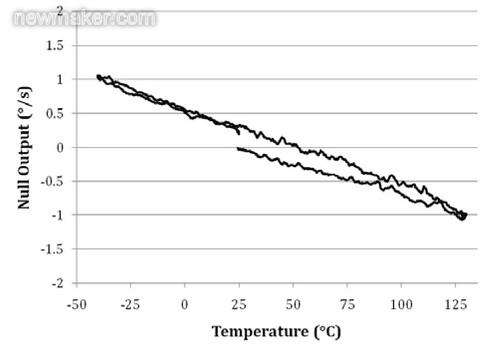 所有中低價位的MEMS陀螺儀都有一定的時間-零點偏置和比例因子誤差,此外還會隨溫度而發(fā)生一定的變化。因此,對陀螺儀進行溫度補償是很常見的做法。一般而言,陀螺儀集成溫度傳感器的目的就在于此。溫度傳感器的絕對精度并不重要,重要的是可重復性以及溫度傳感器與陀螺儀實際溫度的緊密耦合?,F(xiàn)代陀螺儀的溫度傳感器幾乎毫不費力就能達到這些要求。