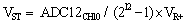 對于12位的ADC模塊,VST可以通過下面的A/D轉(zhuǎn)換公式求得: