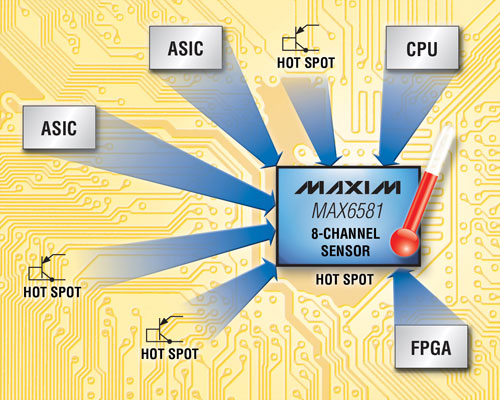Maxim推出精度為±1°C的8通道溫度傳感器MAX6581。器件具有7路遠(yuǎn)端檢測通道,可監(jiān)測帶有多個(gè)熱源的ASIC、FPGA、CPU和電路板。每路遠(yuǎn)端檢測通道均具有串聯(lián)電阻抵消和β補(bǔ)償功能,可實(shí)現(xiàn)最高精度。MAX6581包含了8路溫度檢測通道,但這8路通道卻僅需單個(gè)I2C地址,因而有效降低了電路板面積和系統(tǒng)整體成本。