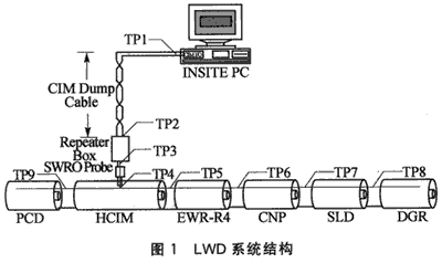 井下系統(tǒng)包括:總線控制器(HCIM)、隨鉆自然伽馬測量儀(DGR)、隨鉆電阻率測量儀(EWR)、隨鉆中子傳感器(CNP)、隨鉆巖石密度傳感器(SLD)、工具串振動傳感器(DDS)、探管(PCD)。