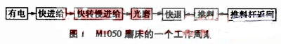 M型磨床是M1050型無心磨床的簡稱,是一種自動化程度要求較高的機(jī)床設(shè)備,主要對圓錐度小于1:20的圓錐體和各種成型回轉(zhuǎn)體零件的切入磨加工,附加通磨托架,可作通磨加工。磨床控制系統(tǒng)一直采用繼電器邏輯控制方式,導(dǎo)輪的速度調(diào)節(jié)由直流變換裝置控制直流電動機(jī)得到,既不方便,效率又低。