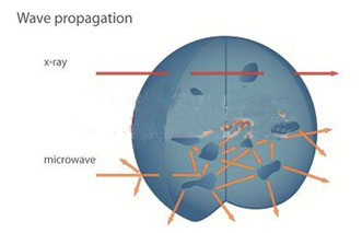 微波診斷與其它的醫(yī)學(xué)影像技術(shù)本質(zhì)上差別很大。X射線直接穿過檢測部位,而超聲儀則利用了聲波的反射。但微波診斷技術(shù)利用的是微波在體內(nèi)的散射(圖2)。這臺儀器使用了一個接有許多天線的裝置;使用儀器時,這個裝置被戴在頭上。每根天線每次傳輸一個聲波信號給信號采集器,與此同時,其它的天線會接收信號。這項技術(shù)的另一個優(yōu)勢在于,它的部件非常緊湊,可以方便的在健康護理鏈的前端——急救室或救護車內(nèi)——使用。