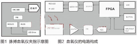 圖2所示脈搏血氧儀硬件電路以京微雅格M1(衡山)系列FPGA作為主控制器,整個(gè)硬件系統(tǒng)包括血氧檢測頭,LED橋式驅(qū)動(dòng)電路,濾波放大電路,系統(tǒng)外部電路組成。