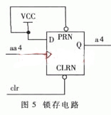 如果多路脈沖信號(hào)有重疊,例如有兩路信號(hào)發(fā)生重疊,而中斷信號(hào)只有在四路都為低時(shí)才會(huì)產(chǎn)生,因此需要對(duì)信號(hào)進(jìn)行鎖存。本設(shè)計(jì)采用D觸發(fā)器來(lái)實(shí)現(xiàn)鎖存,電路如圖5所示。