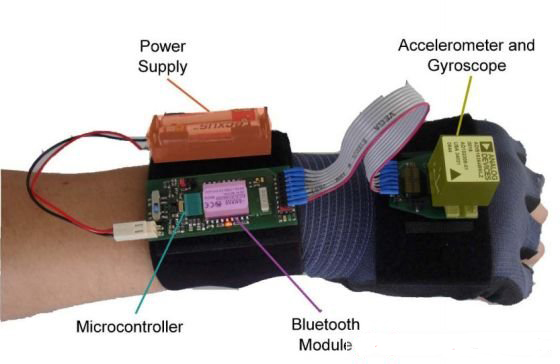 卡爾斯魯厄理工學(xué)院認(rèn)知系統(tǒng)實(shí)驗(yàn)室(Cognitive Systems Lab)的一個(gè)團(tuán)隊(duì)將普通的針織手套中置入了慣性傳感器、加速計(jì)、陀螺儀等先進(jìn)儀器,一旦有人戴著它在空中比劃某些英文字母、單詞甚至是句子,這套系統(tǒng)都可以輕松識別出來。