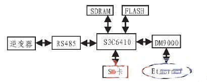 監(jiān)控系統(tǒng)硬件分為核心板和底板2個(gè)部分。核心板使用S3C6410處理器,外擴(kuò)128MBSDRAM和256MBFLASH外部存儲(chǔ)器。底板采用的是RS485采集接口,3線(xiàn)RS232串口,SD卡存儲(chǔ)接口以及以太網(wǎng)控制器和RJ45組成的以太網(wǎng)接口,硬件結(jié)構(gòu)如圖1所示。