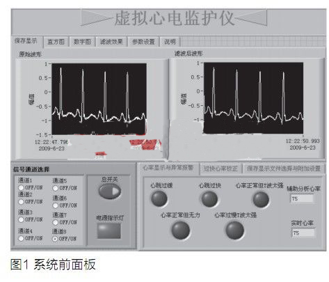 心電監(jiān)護(hù)系統(tǒng)的前面板和程序框圖分別見(jiàn)圖2和圖3。