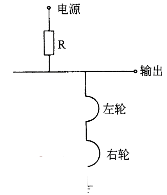 磨損檢測傳感器在盤式制動器上的安裝情況如圖2所示。磨損檢測傳感器用一個安裝在摩擦片中的U形金屬絲檢測,U形金屬絲的頂端就處在制動器摩擦塊的磨損極限位置上,制動器摩擦片沒有磨損到極限位置時,輸出電壓為0,當摩擦片磨損到規(guī)定限度時,U形金屬絲部分被磨斷,電路斷開,這時輸出電壓為高電平,異常信號輸人電控單元中或通過電阻R接通報警電路,使燈泡點亮,圖3為磨損檢測傳感器工作電路。