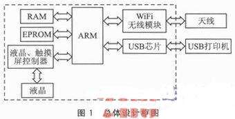 存儲器系統(tǒng)提供2 MB的NOR FLASH和16 MB的NAND FLASH來存放BootLoader啟動程序和應(yīng)用程序。WiFi無線模塊接收無線網(wǎng)絡(luò)傳輸?shù)奈募?,再送到USB芯片的下行口連接的USB打印機(jī)實(shí)現(xiàn)打印。