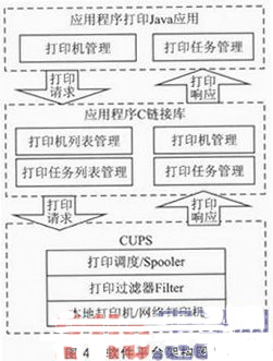 軟件平臺基于Android實(shí)現(xiàn),人機(jī)操作界面采用Java語言編寫,Java語言通過JNI訪問打印框架鏈接庫,再由打印鏈接庫完成與后臺打印服務(wù)程序的通信。整體實(shí)現(xiàn)遵循Linux系統(tǒng)下的CUPS標(biāo)準(zhǔn),針對不同型號的打印機(jī)提供相應(yīng)的CUPS打印驅(qū)動程序即可完成文件的打印。