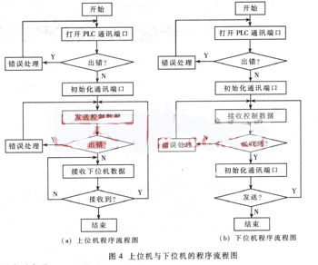 采用以下幾種方法對(duì)產(chǎn)生的問題進(jìn)行解決。第一:關(guān)于收發(fā)切換引起的延遲。在半雙工通訊中,波特率一定的條件下,系統(tǒng)的響應(yīng)時(shí)間主要取決于PLC的最大指令執(zhí)行循環(huán)時(shí)間和無線收發(fā)模塊的收發(fā)切換時(shí)間。PLC的最大指令執(zhí)行循環(huán)時(shí)間由PLC的軟件系統(tǒng)結(jié)構(gòu)決定,在進(jìn)行編程的時(shí)候,充分考慮這些因素進(jìn)行編程。第二:關(guān)于數(shù)據(jù)傳輸?shù)姆€(wěn)定性和準(zhǔn)確性。為了保證數(shù)據(jù)傳輸?shù)姆€(wěn)定性和準(zhǔn)確性,采取了幾種方法。(1)對(duì)發(fā)送來的每一組數(shù)據(jù)檢查起始字節(jié)和結(jié)束字節(jié),采用奇校驗(yàn);(2)采用工程上的循環(huán)冗余校驗(yàn)(CRC),這種方法是對(duì)發(fā)送的數(shù)據(jù)按字節(jié)進(jìn)行異或運(yùn)算,將得到的結(jié)果作為FCS校驗(yàn)碼同要發(fā)送的數(shù)據(jù)一起發(fā)送到下位機(jī),下位機(jī)將收到的數(shù)據(jù)進(jìn)行同樣的運(yùn)算,將結(jié)果與FCS比較來確定收到的數(shù)據(jù)是否正確;(3)此外,在收發(fā)切換與數(shù)據(jù)發(fā)送之間插入一定的延時(shí),延時(shí)時(shí)間大于無線收發(fā)模塊的收發(fā)切換時(shí)間,易于保證數(shù)據(jù)傳輸?shù)姆€(wěn)定性。實(shí)驗(yàn)證明,以上方法大大提高了通訊系統(tǒng)的可靠性,降低了誤碼率,減少潛在的故障。