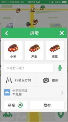 相比其他導航,“車托幫”V3.0的亮點在于疊合了官方數(shù)據(jù)和民間數(shù)據(jù)的雙重優(yōu)勢。一方面,車托幫通過合作,充分吸收官方權(quán)威路況數(shù)據(jù)。另一方面,其UGC模式,也開辟了另外一條重要的路況采集渠道——用戶分享。