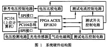 本系統(tǒng)以一臺PC104 為上位計算機(jī),以FPGA為核心,通過PC104 總線實現(xiàn)上位機(jī)對測試的控制。