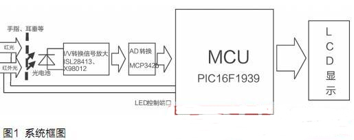 整個(gè)系統(tǒng)如圖1所示,紅光及紅外光經(jīng)過手指或耳垂,由光電池感應(yīng)出電流,經(jīng)ISL28413進(jìn)行I/V轉(zhuǎn)換放大,再送入MCP3425進(jìn)行AD轉(zhuǎn)換,MCU根據(jù)紅光及紅外光的AD轉(zhuǎn)換結(jié)果計(jì)算得到血氧飽和度,并可順便計(jì)算出脈膊,同由LCD顯示出來。圖2為I/V轉(zhuǎn)換及信號(hào)放大的電路,光電池是電流型器件,這就需要將電流變化量轉(zhuǎn)換成為電壓變化量,以方便采集。
