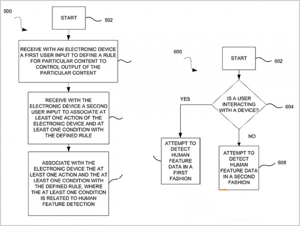 比如說,當一個成年人在看成年電影,另一個或多個成年人進入后,電影會正常播放,但如果孩子進入,電影就會立刻停止。此外,用戶還可以根據(jù)特定屬性分配權(quán)力,比如當老年人存在時自動增加音量。當老年人離開后,音量會恢復正常。用戶的聲音也會決定媒體播放的音量,當用戶離設備比較遠的時候,音量最自動增加。這項人類識別專利在2012年申請,發(fā)明人是Michael I. Ingrassia, Jr.和 Nathaniel Paine Hramits。