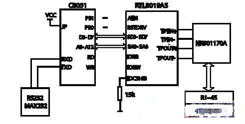 2 單片機(jī)與網(wǎng)卡的接口電路